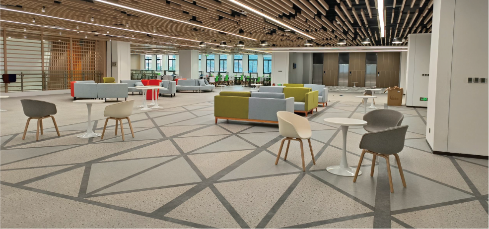 这是一个大学自习室的地面安装项目。ROCOcO的设计师们做了一个漂亮的设计,最终客户选择了这个方案。后来,类似的设计也出现在许多电视剧中。